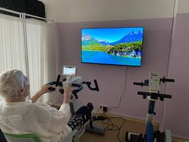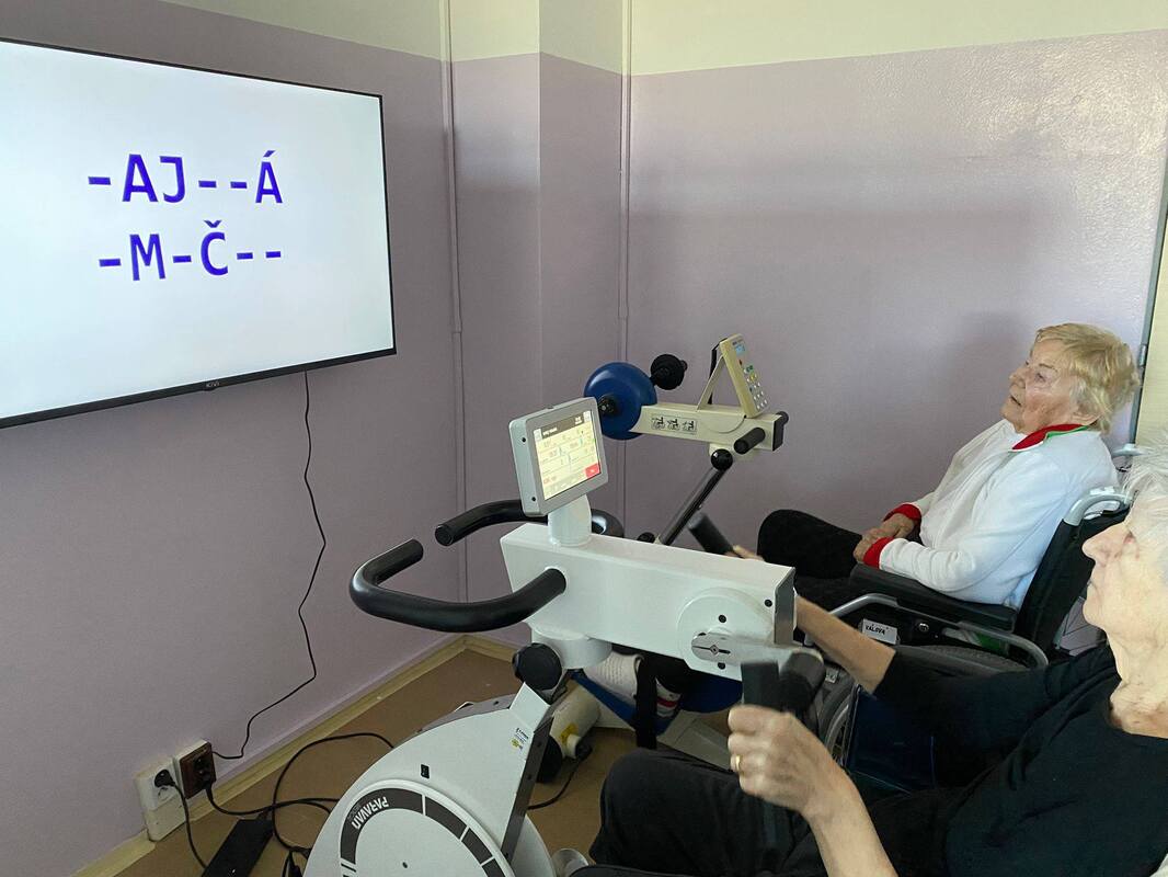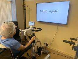 Není to ale jen obyčejné cvičení. Abychom tělo i mysl udrželi v kondici, propojujeme pohyb s tréninkem paměti. Někdo u toho virtuálně projíždí krásnou krajinou, a když je potřeba pořádné tempo, pustíme na přání třeba i Kabáty! S takovou energií jdou kilometry i rehabilitace samy