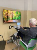 Naši klienti pod vedením šikovných ergoterapeutek pořádně šlapou do pedálů na Motomedu.